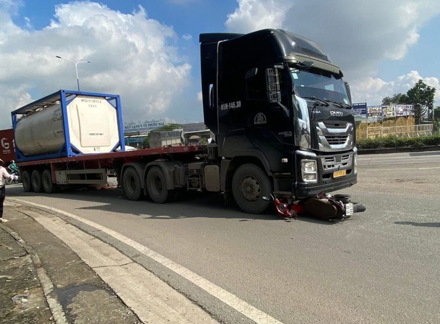 Bình Dương sáng nay Xe đẩy kéo lưu thông trên đường Mỹ Phước Tân Vạn ôm cua vào Quốc Lộ 1k thì xảy ra vacham với xe máy do người đàng ông chở vợ và cháu ngoại. Hậu quả là bà và cháu t.v tại chỗ ông thì cũng không qua khỏi ngay sau khi đưa đến bệnh viện sau đó.