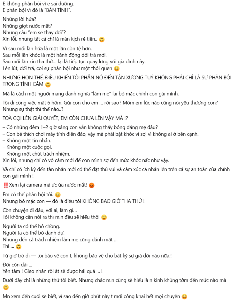 Chuyện là chị vợ này ăn nằm với đủ combo sau lưng chồng từ hồng hài nhi đến ngưu ma vương. Chồng bắt được up hết bằng chứng lên mxh khiến cộng đồng mạng rùm beng cả tuần nay rồi